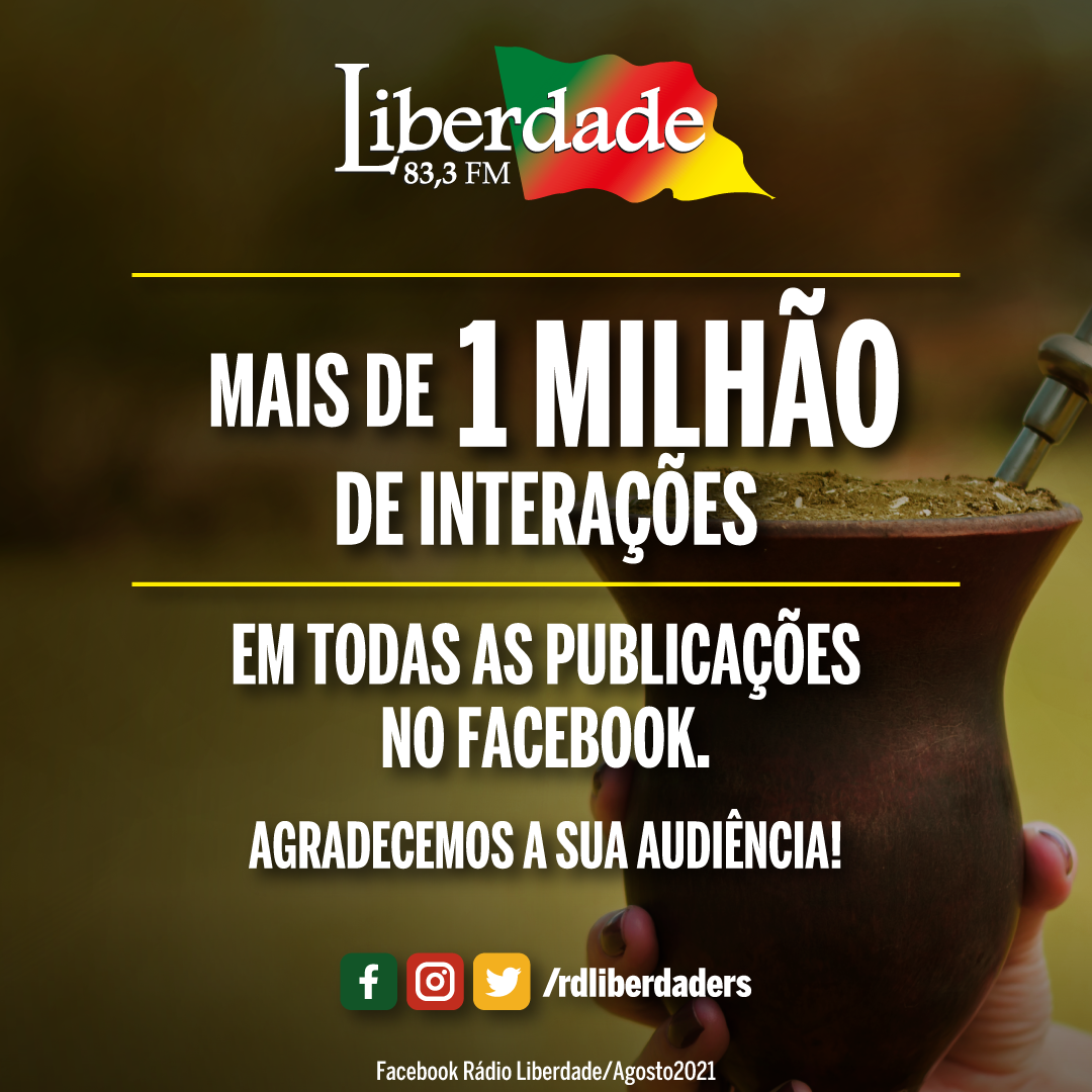 A Rádio Liberdade, a emissora de bota e bombacha da Rede Pampa de Comunicação, conquistou, em agosto de 2021, mais de 1 milhão de interações no Facebook, em um único mês.