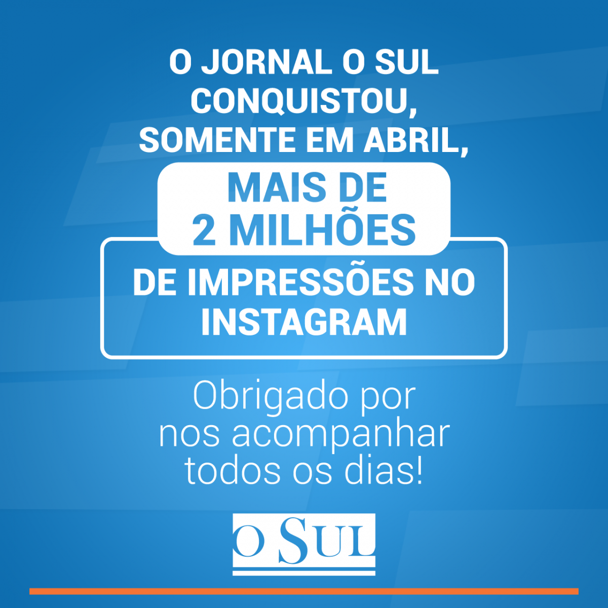 O Jornal O Sul, disponibilizado de forma 100% gratuita e digital, conquistou, em abril de 2021, 2.106.897 impressões somente no Instagram. O jornal, que há quase duas décadas se destaca pela imparcialidade e credibilidade, levando a todos os leitores as principais notícias de Porto Alegre, do Rio Grande do Sul, do Brasil e do mundo, é referência para os gaúchos como um veículo de comunicação plural e totalmente digital.