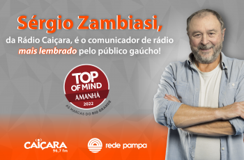 O radialista Sérgio Zambiasi, ícone à frente dos microfones da Rádio Caiçara, conquistou novamente o Prêmio Top Of Mind na categoria “Comunicador de Rádio”, um reconhecimento às…