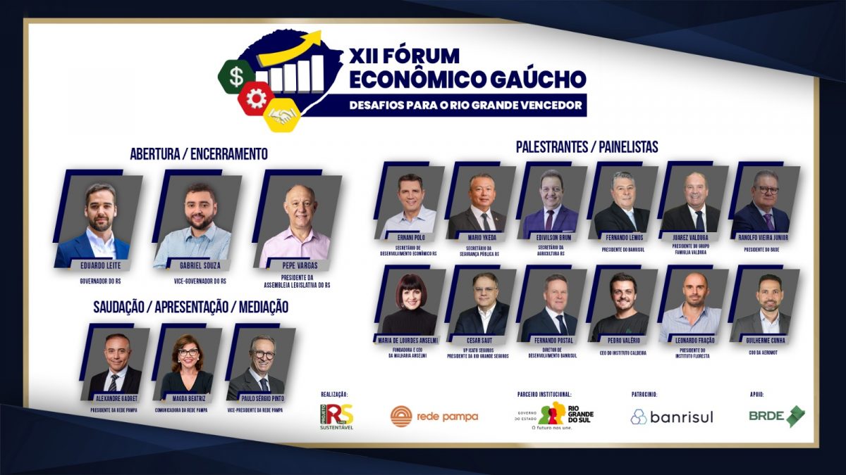 Será realizado no dia 4 de dezembro, a partir das 14h30, o XII Fórum Econômico Gaúcho – Desafios para o Rio Grande Vencedor, evento realizado pela Rede Pampa, em parceria com a Secretaria do Desenvolvimento Econômico do RS, Banrisul e Banco Regional de Desenvolvimento do Extremo Sul (BRDE). A nova edição ocorrerá no auditório do Tribunal de Contas do Estado do RS (TCE-RS), em Porto Alegre.