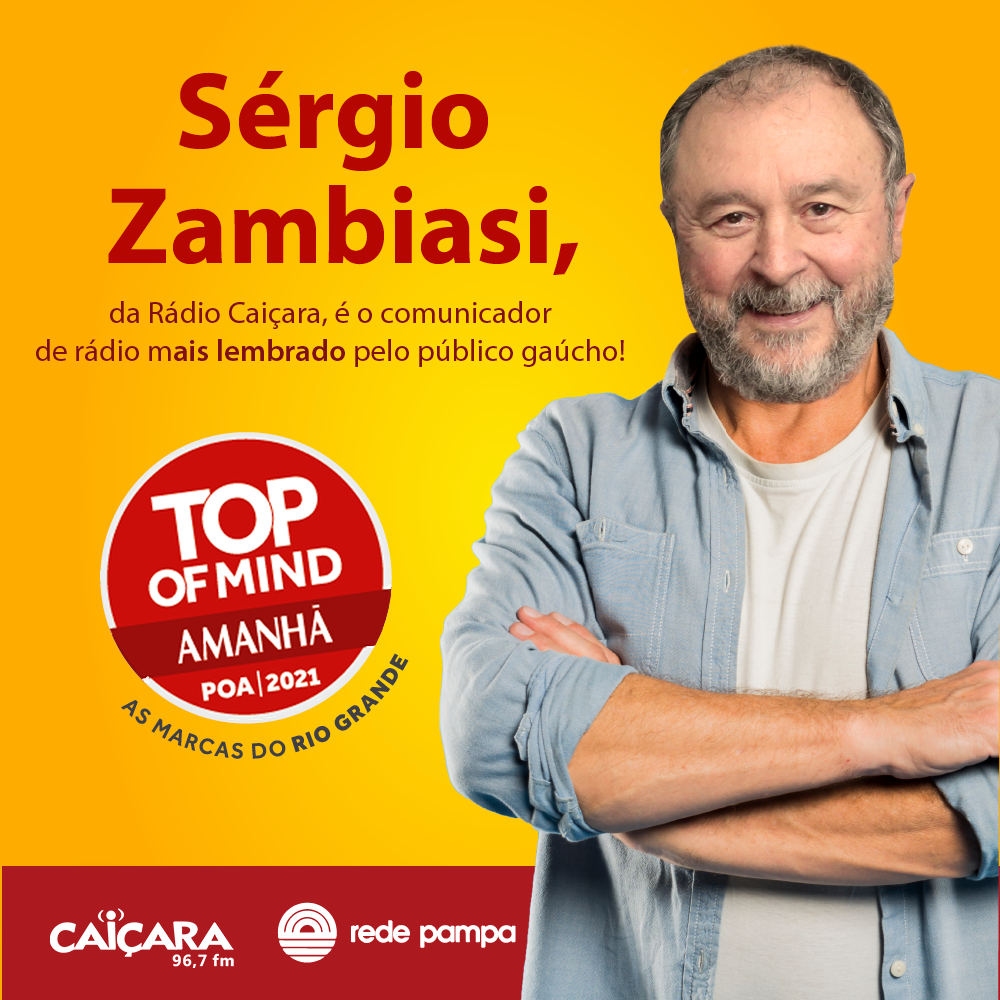 O radialista Sérgio Zambiasi conquistou mais uma vez o Prêmio Top Of Mind na categoria “Comunicador de Rádio”, prêmio que reconhece e divulga as marcas e personalidades mais lembradas pelos gaúchos. Esta é a 31ª edição do prêmio promovido pela Revista Amanhã. Zambiasi foi agraciado com a tradicional pesquisa pela trigésima primeira vez consecutiva.